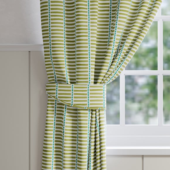 Report incorrect product information* Made to Order* Emily Bond* Motif design* 100% cotton* Available in different colourways* Choose plain or piped edge* Coordinating Made to Measure items available to purchase separately* Made in UK Fun, modern, and playful, the Emily Bond Fergus Made to Order tiebacks feature a motif design of horizontal stripes and circles. From neutral to more vibrant tones, choose from a selection of colourways. Crafted from 100% cotton, the fabric is long-lasting and breathable. A great choice for living rooms, bed...