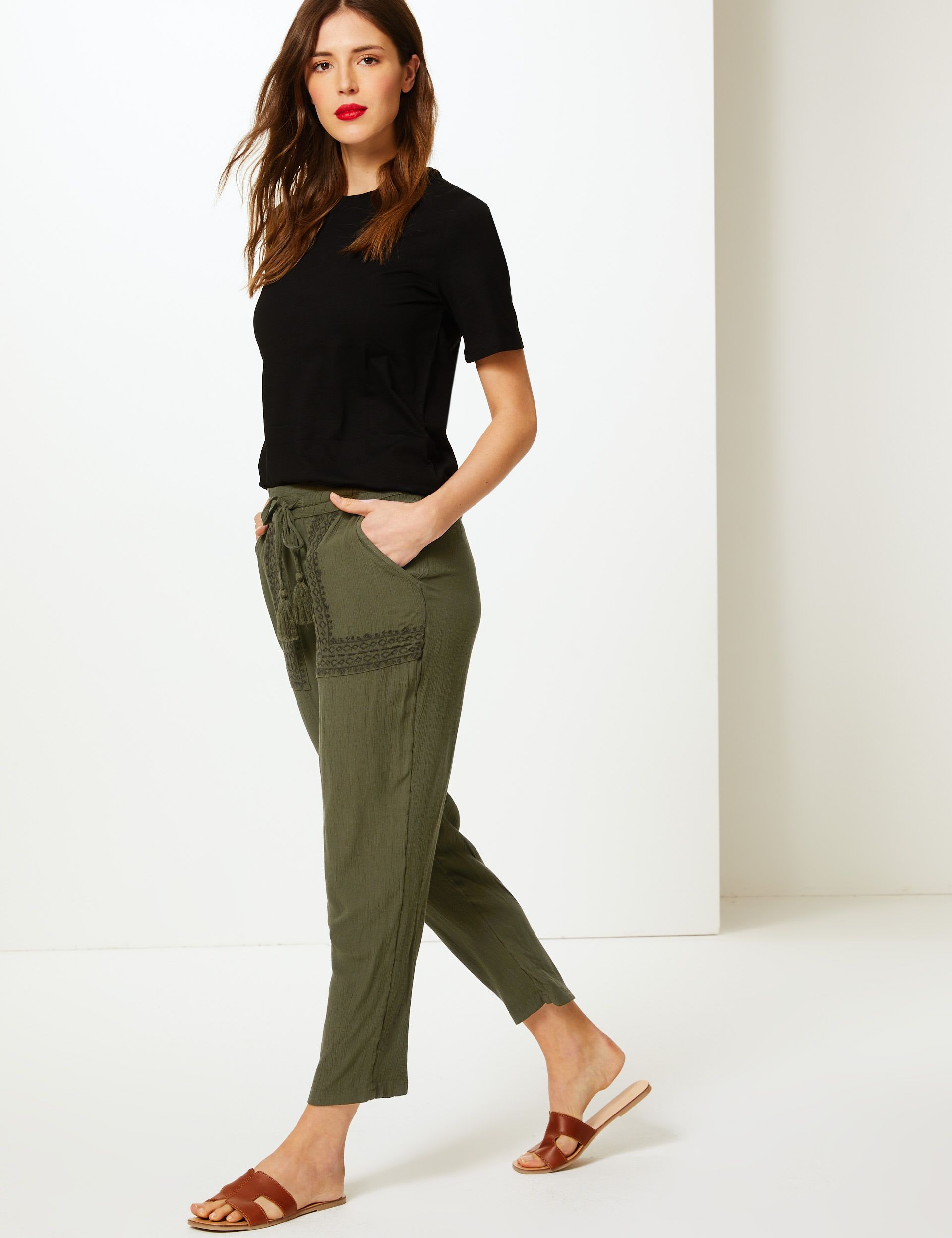 Report incorrect product informationAdd some bohemian chic to your wardrobe with these tapered fit trousers. Details like a drawstring waist complete with tassel trims and embroidery on the pockets add some authentic touches to these peg trousers, made from a breathable viscose.