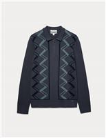 Be bold as brass - and shine as brightly - in this lustrous mercerised cotton long-sleeved polo shirt from our Autograph collection. It's crafted from soft yarn for luxurious comfort. The half-zip at the neck is cool and casual. The geometric pattern gives it a statement look. Its ribbed trims fit snugly, and the subtle branded tab at the hem gives this piece a signature finishing touch. Autograph: premium investment pieces featuring contemporary cuts and refined finishing touches.