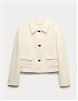 A tweed-style texture gives this versatile jacket a timeless look. It's designed in a regular fit with a neat collared neckline and a classic button-through fastening. The added wool ensures a warming feel, while the two flap pockets offer handy storage space for your daily essentials. M&S Collection: easy-to-wear wardrobe staples that combine classic and contemporary styles.