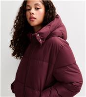 Girls. Embodying non-stop comfort with its oversized shaped and padded finish this burgundy jacket has a functional hood and side slip pockets. Material: : woven Padding: : midweight Fit: : oversized Length: : short meet-the-jean Colour: : burgundy Neckline: : hood press-stud fastening to keep the warmth in Pockets: : side slip Sleeves: : long Fastening: : zip Model: : 5'4/164cm and wears Age 1213/height 152158cm
