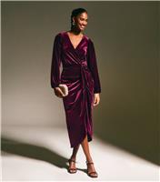 Made from plush velvet to a wrap structure this burgundy dress has a classy and elegant tone. It drapes elegantly to a midi length with long sleeves and is slit at the hem. Material: : velvet Fit: : relaxed Length: : midi Colour: : burgundy Neckline: : V-neck Sleeves: : long sleeves Fastening: : elasticated waist Design: : wrap shape ruching asymmetric hem tie waist Model: : 58/173cm and wears UK 8/EU 36/US