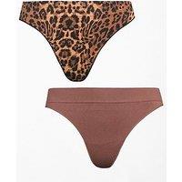 Report incorrect product informationThe Very Collection 2 Pack Seamless Print And Plain Thongs Size & Fit Available in sizes S - L Details 2 Pack Seamless Print And Plain Thongs by The Very Collection Brown Seamless Mid rise High cut leg 1 x Animal print 1 x Plain Material & Care Material Content: 95% Nylon 5% Elastane Washing Instructions: Machine Washable